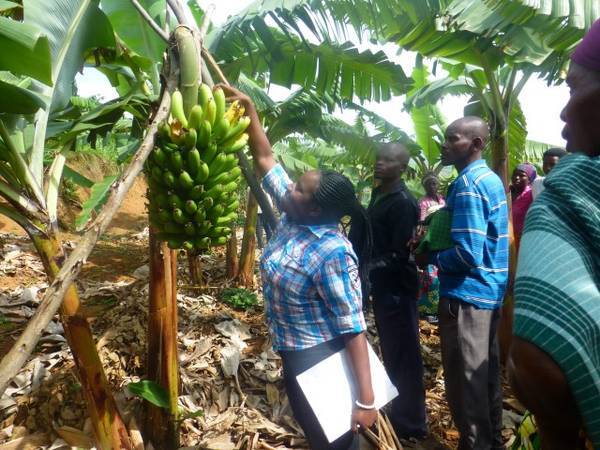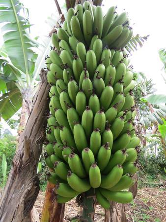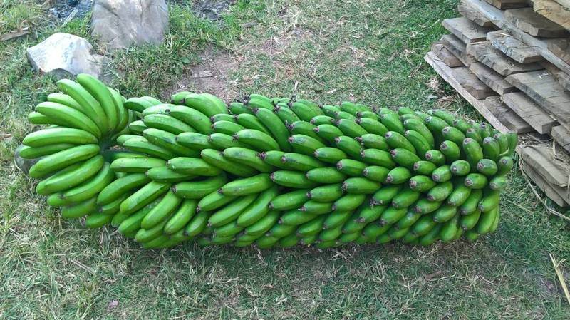 Die Stauden haben zum grossen Teil ein Gewicht von fast 100 kg Bananen. Bei den früheren Sorten in der Umgebung angepflanzt wurden lag der Ertrag bei ca. 30 kg.