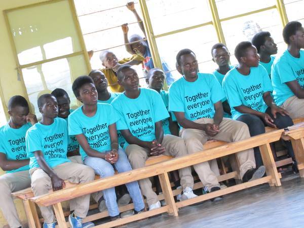 The I.P.K. English Club meets 3 times a week after the end of the lessons from 5 pm to 6 pm. It is a voluntary get-together of students from different educational levels who want to improve their English knowledge by studying together with the English teacher and the volunteers of JMfA (Young people for Africa). Activities in the English Club comprise reading texts and articles, practising vocabulary, leading debates, and performing plays.