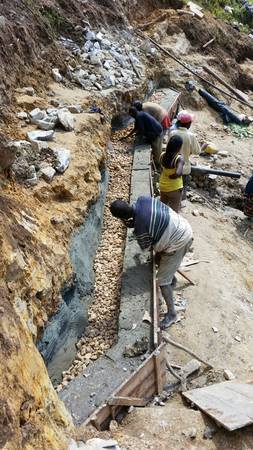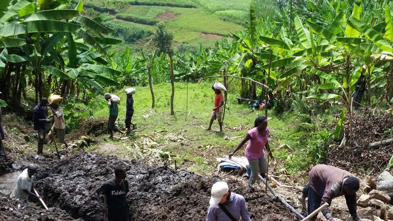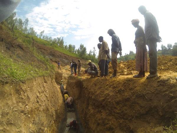 In total 4 groups with 2 persons, each from Engineers without Frontiers will travel to Kirinda. The first group with Erna Schneider and Tobias Fiedler just came back. In between the stays of the different German groups, there are short breaks during which the population of Kirinda is going on to work on the project under the supervision of the Rwanda group of Engineers without Frontiers. These works comprise mostly forest clearance and excavations for the pipe routes.