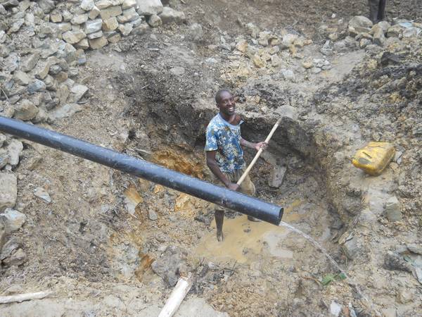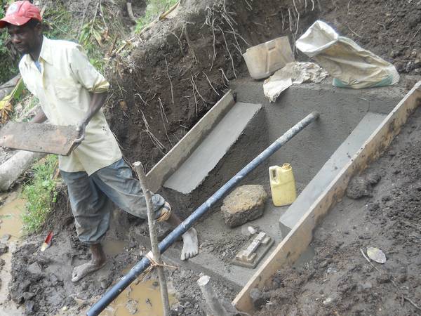 Checking and – if necessary – repairing and renovating the existing spring tappings to increase the water volumes. There are already three springs connected to a cistern in the village. This cistern was financed in 2008 by Junge Menschen für Afrika (Young People for Africa).