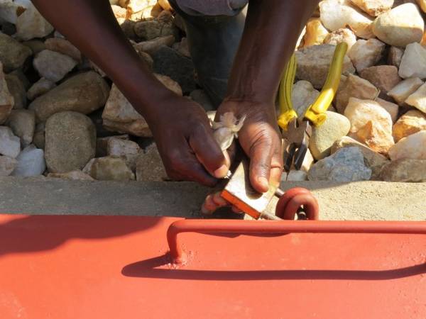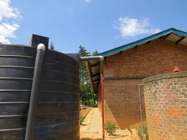Setting up of a rainwater tank and mounting of rainwater gutters on buildings. So, the primary and secondary school have a 10,000 l water tank for their disposal which takes up the rainwater by the gutters and roof rails. This water is good for the handwashing at the schools and for laundering the clothes for the citizens of Kirinda.