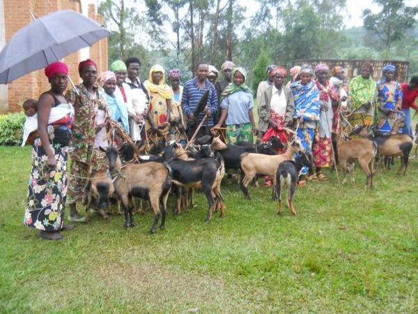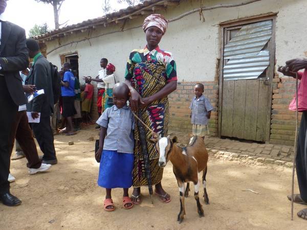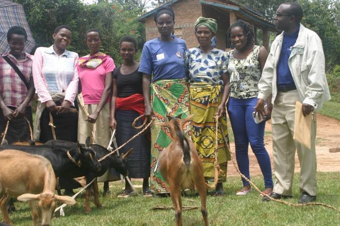 Single women in Rwanda. The goat delivers milk, fertilizer and baby goats and thus leads to a sustainable improvement of life quality for women and their children.